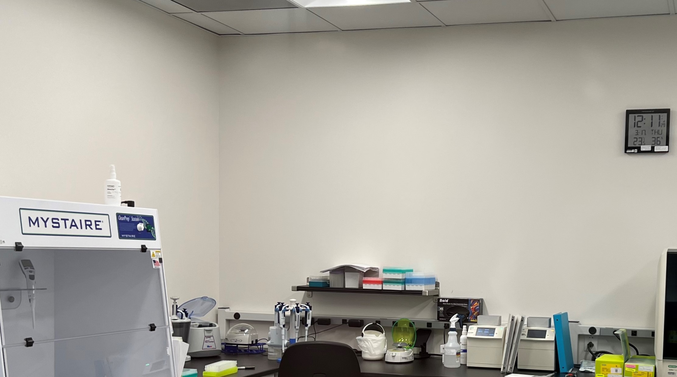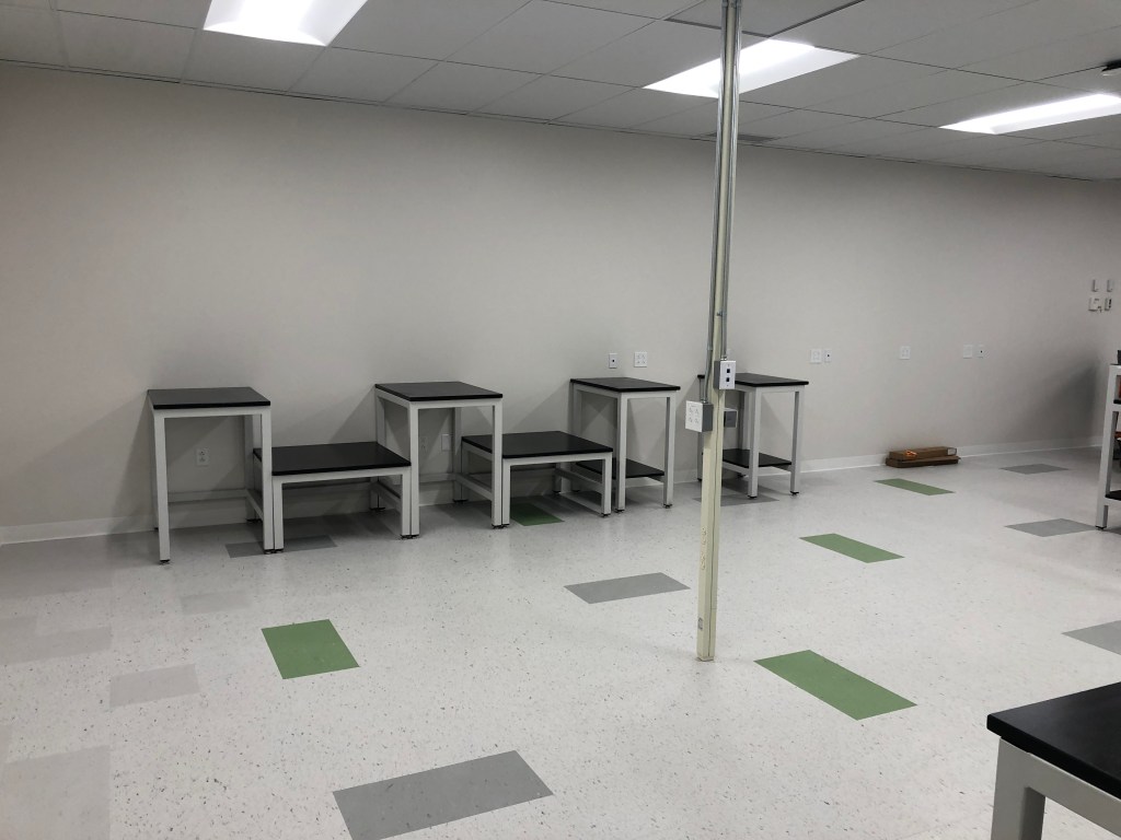 The lab hallway connects the administrative office area to all labs and the receiving area. Gowning garments and refrigerated storage for process reagents are stored in this space.